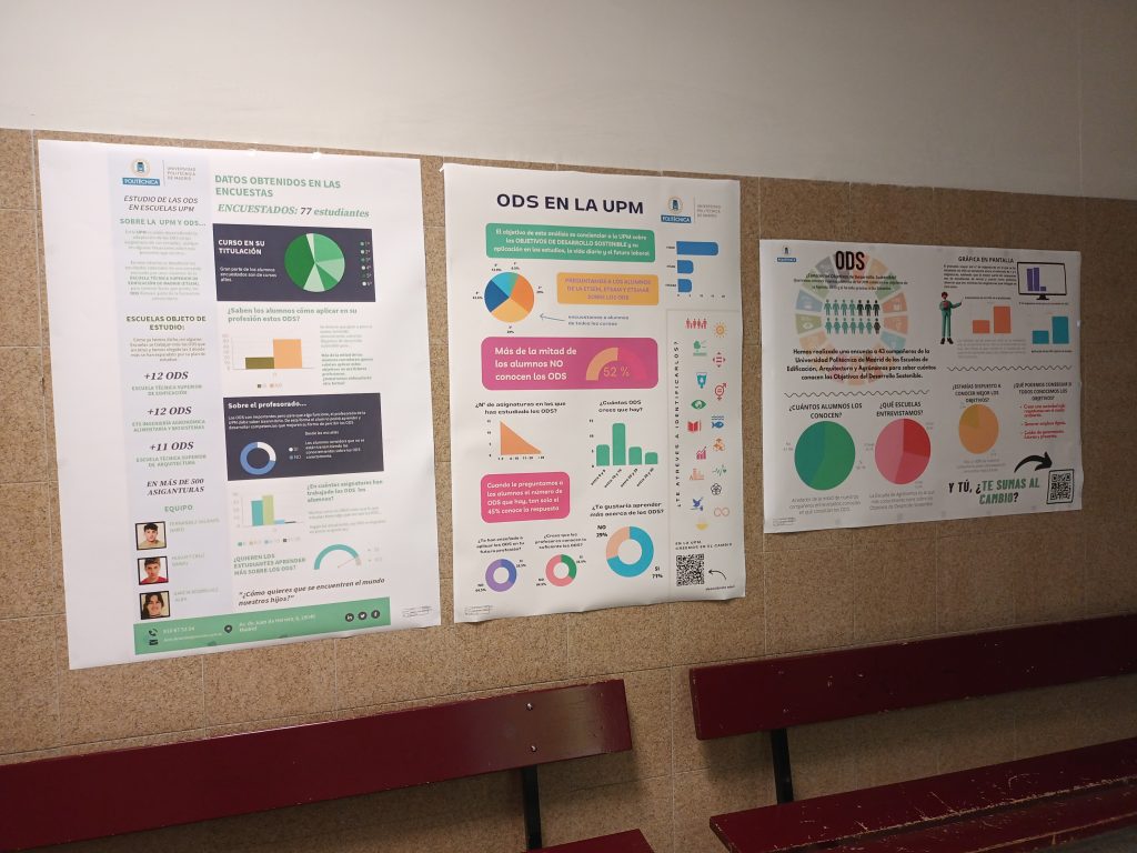 El alumnado participante ha realizado durante el curso académico un análisis sobre el estudio de los ODS en la UPM y han elaborado unos posters para promover la sensibilización sobre la importancia de los mismos.