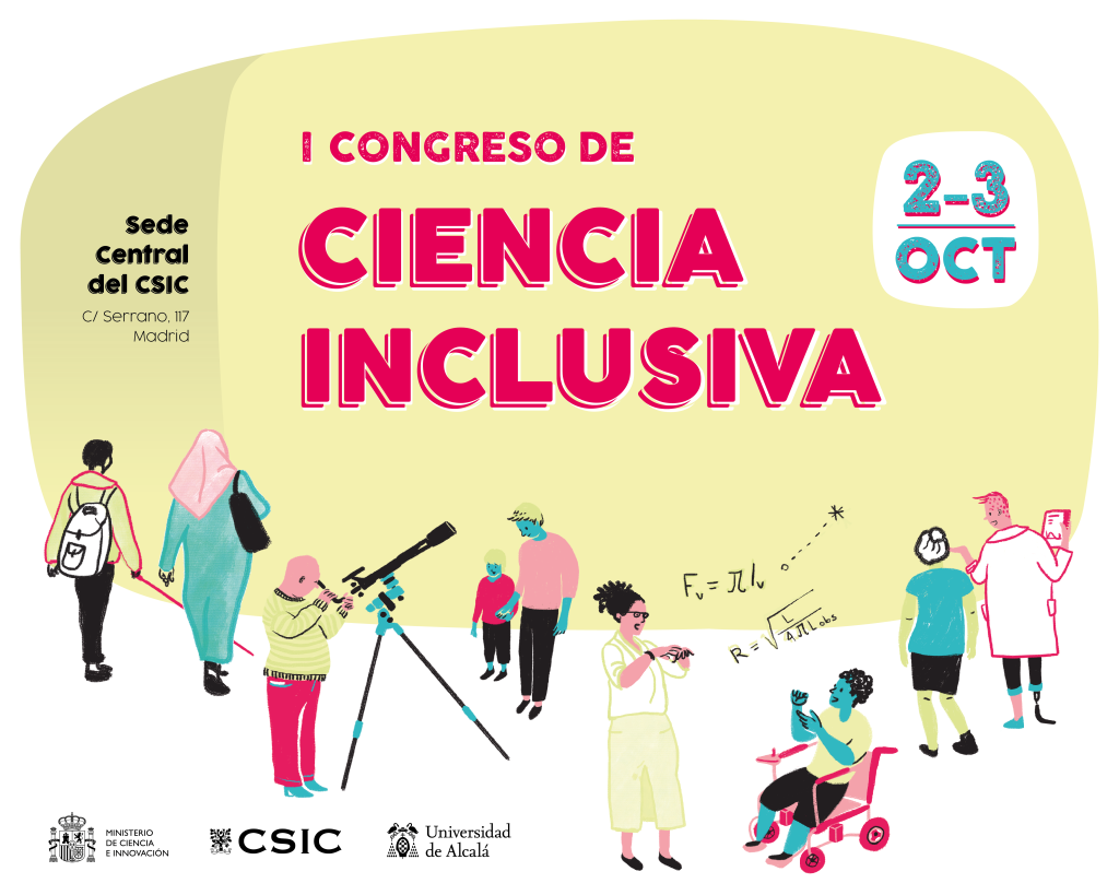 La Universidad de Alcalá (UA) y el Consejo Superior de Investigaciones Cienítificas (CSIC) a través de su Vicepresidencia Adjunta de Cultura Científica y Ciencia Ciudadana (VACC-CSIC) organizan el I Congreso de Ciencia Inclusiva, que se celebrará los días 2 y 3 de octubre de 2023 en la sede central del CSIC en Madrid.